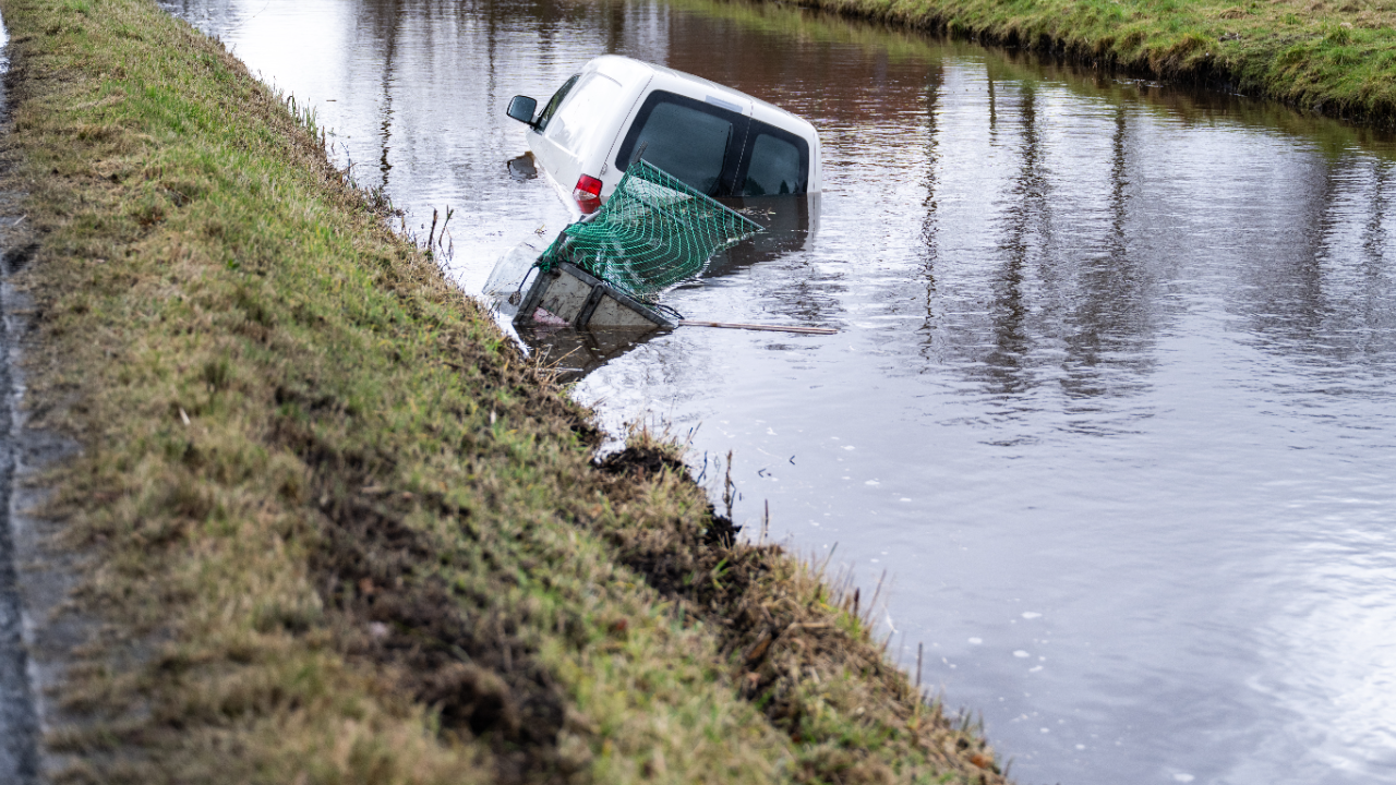 Een bergingsbedrijf haalt het voertuig uit het water en sleept het af. Over de oorzaak van het incident is nog niets bekend.