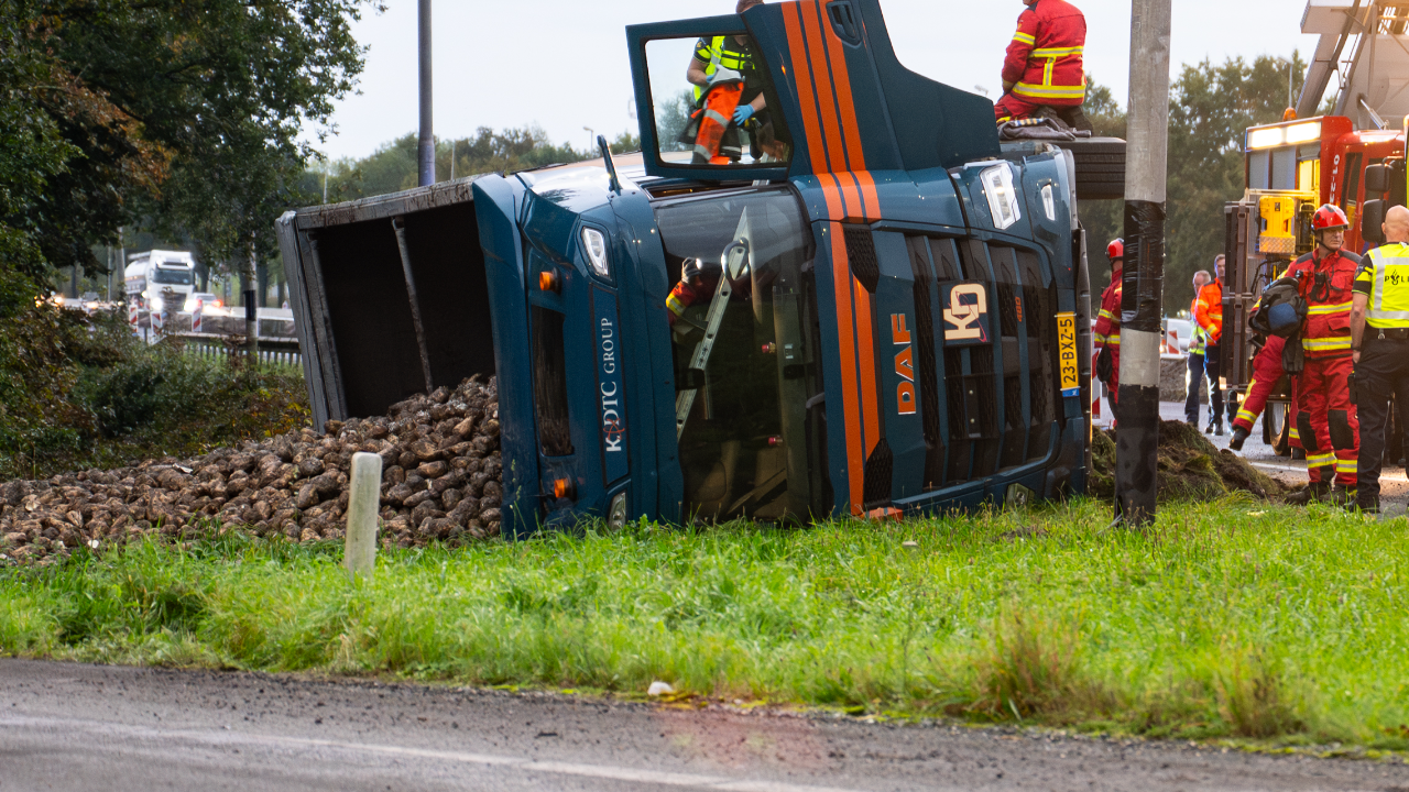 Foxhol – Woensdagavond is een vrachtwagen geladen met suikerbieten gekanteld op de A7 tussen Hoogezand en Foxhol. Het voertuig raakte eerst de vangrail, waarna het op z’n kant belandde. Bij het ongeval raakte in elk geval de bestuurder gewond.