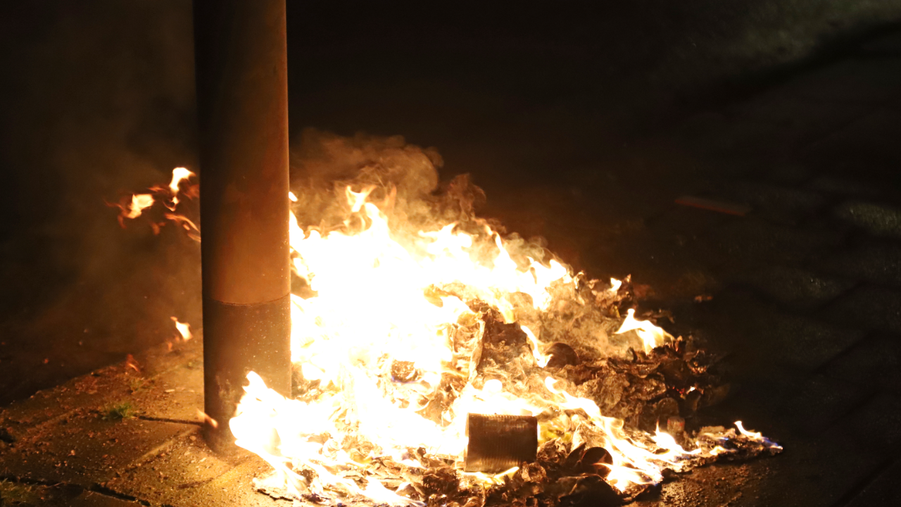 Buitenbrand met plastic afval in Hoogezand