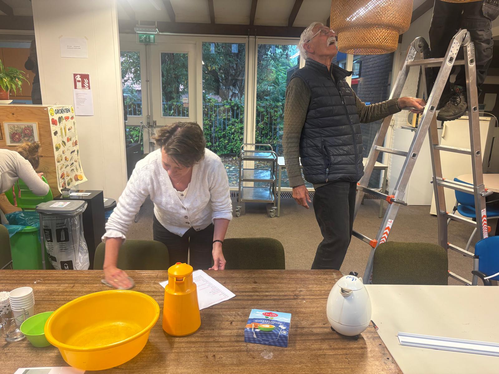 Janneke Kort, die de schoonmaak coördineerde, noemt het gebouw een belangrijke schakel in de gemeenschap. “Ons dorp is een lintdorp, lang en uitgestrekt. Dit gebouw heeft daardoor een soort centrumfunctie. Onze middagen, bijvoorbeeld waarop ouderen bij elkaar komen, worden druk bezocht. We praten met elkaar, drinken een kop koffie en zijn weer even bij.” Ze ziet de schoonmaak ook als een moment waarop iedereen samen de schouders onder het dorpshuis zet.