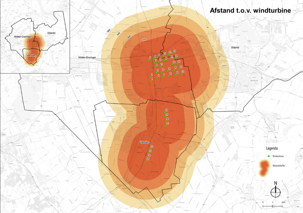 Straal van 3km rond het windpark N33