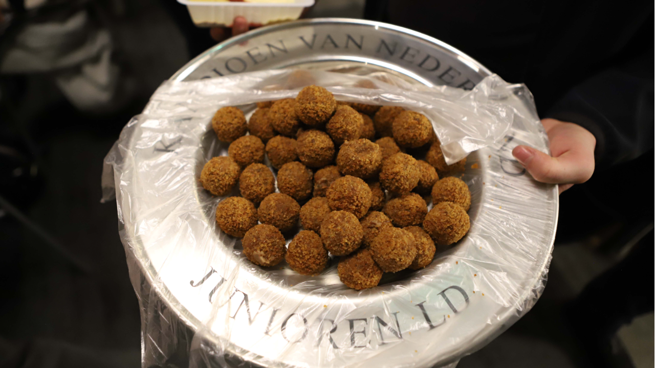“We hadden afgesproken: als de jeugd met de schaal thuiskomt, vullen we ’m met bitterballen en dat hebben we gedaan. “ aldus de leiding van de jeugdbrandweer Hoogezand-Sappemeer. Een smakelijke afsluiting van een indrukwekkende dag. Bron: M. Klip.