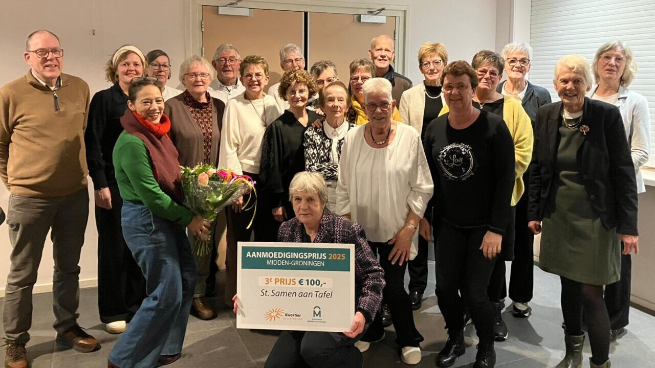 Daarnaast ontvingen de vrijwilligers van Stichting Samen aan Tafel een aanmoedigingsprijs. Raadslid Esmeralda Smith reikte de prijs uit in zalencentrum Brandpunt aan de Noorderstraat in Sappemeer. De stichting organiseert eetmomenten en ontmoetingen en draagt daarmee bij aan het tegengaan van eenzaamheid en het versterken van sociale verbondenheid.
