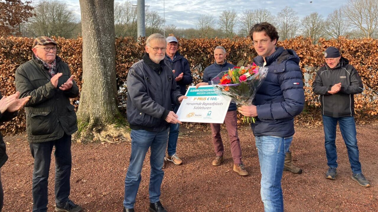 Een van de aanmoedigingsprijzen ging naar de vrijwilligers van de Hervormde Begraafplaats in Siddeburen. Raadslid Yannick Lutterop reikte de prijs uit als erkenning voor het onderhoud en het behoud van de begraafplaats aan de Hoofdweg in Siddeburen. De vrijwilligers zorgen ervoor dat deze plek een waardige en verzorgde omgeving blijft voor nabestaanden en bezoekers.